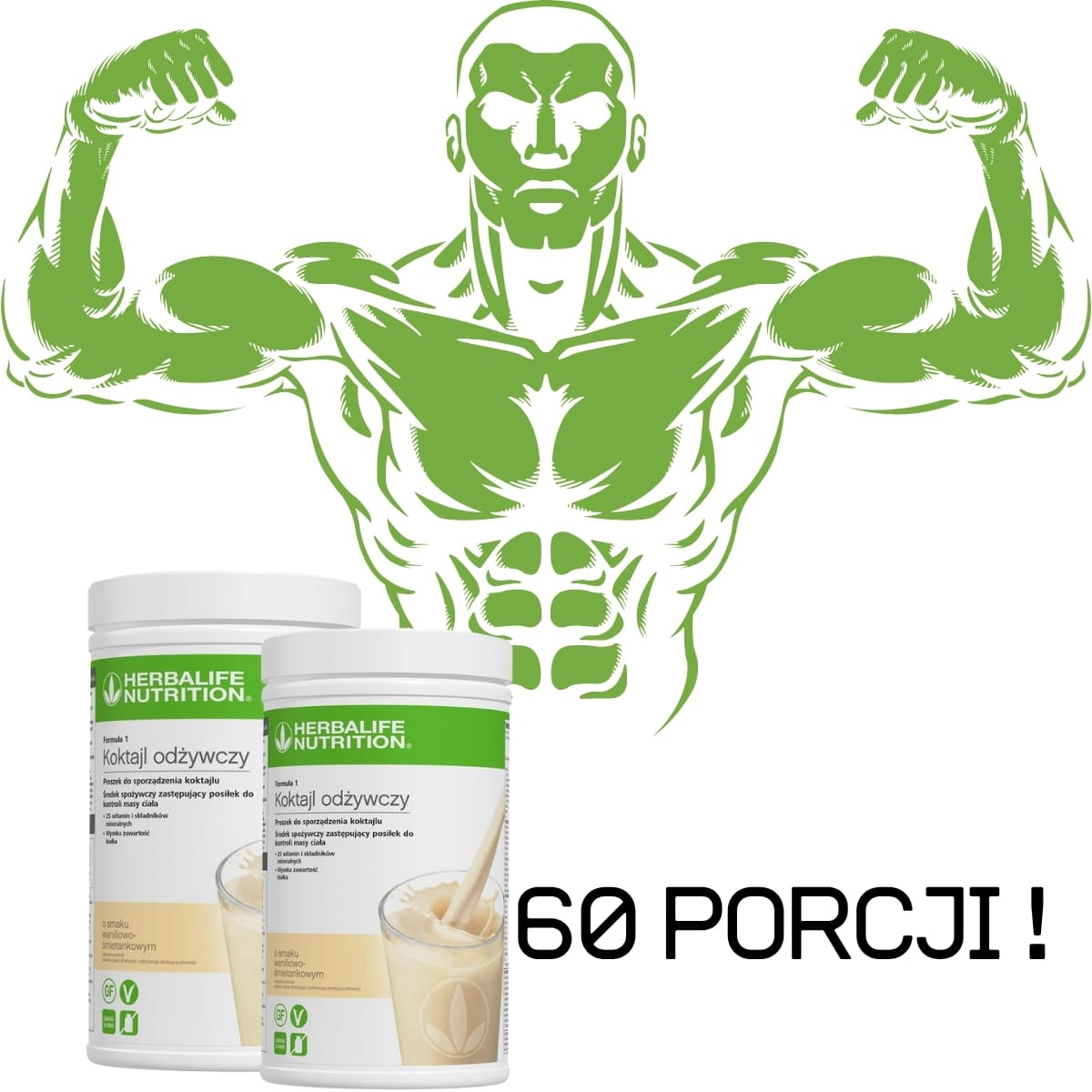 Podwójnie lepiej- JESZCZE WIĘCEJ ODŻYWIENIA!: 2x duży 60porcji Koktajl odżywczy Formuła 1